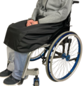 Praktisk vandafvisende kørestolsdækken, som er syet i regntøjsstof og et lunt fleece-fór.